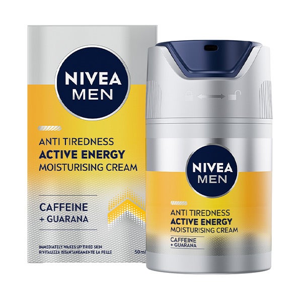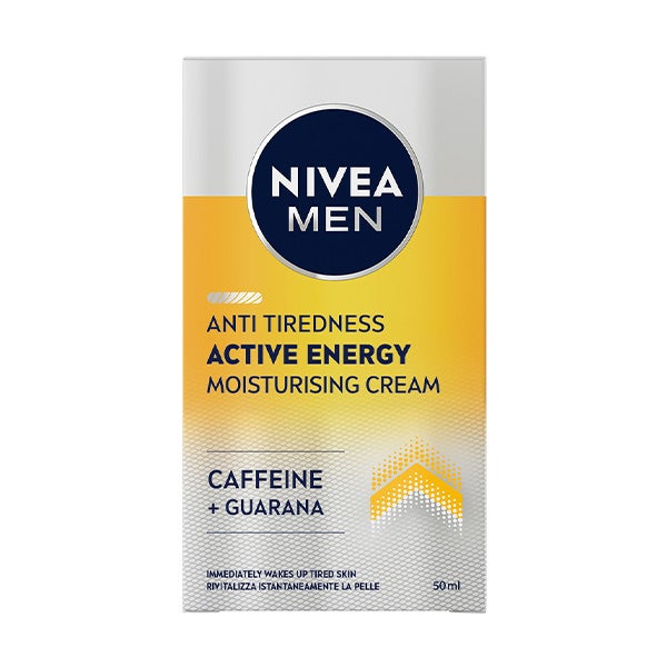 Enriquecida con cafeína de origen 100% natural, la Crema Hidratante NIVEA MEN SKIN ENERGY hidrata y refresca al instante la piel masculina, combate los signos de cansancio revitalizándola de forma duradera, y mejora el estado de la piel para poder mostrar un aspecto sano y lleno de energía. Una crema hidratante especialmente desarrollada para revitalizar la piel cansada del hombre. Fórmula dermatológicamente comprobada. ¿Piel cansada? Que no se te note. Piel llena de vida de forma duradera con NIVEA MEN SKIN ENERGY Crema Hidratante.
