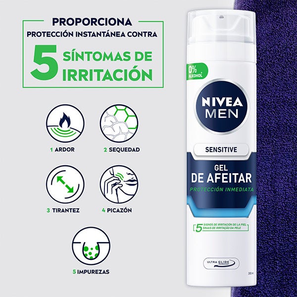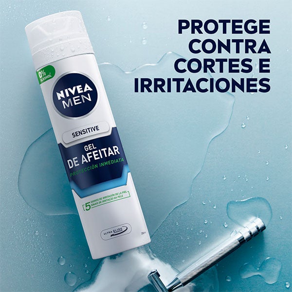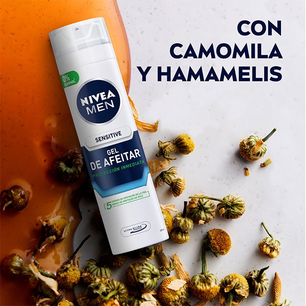 NIVEA MEN Sensitive Gel de Afeitar: protege la piel sensible de la irritación durante el afeitado. Su fórmula extra suave (sin alcohol) enriquecida con Camomila y Hamamelis cuenta con la innovadora tecnología Ultra Glide que asegura un deslizamiento suave de la cuchilla para un afeitado apurado y libre de irritaciones. Prepara la piel sensible para un afeitado comfortable: Sensitive Gel de Afeitar.