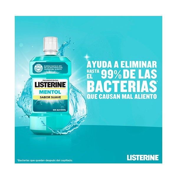 Graças à sua fórmula baseada em óleos essenciais com flúor e sem álcool, o enxaguante bucal Mentol Suave proporciona 24 horas de proteção contra a placa e a tranquilidade de um hálito fresco duradouro.