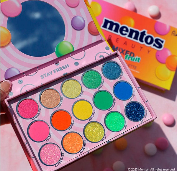 Graças aos seus três tipos de texturas, esta paleta permite versatilidade nos seus looks com cores pastel ou neon para refrescar com Mentos sua maquiagem.