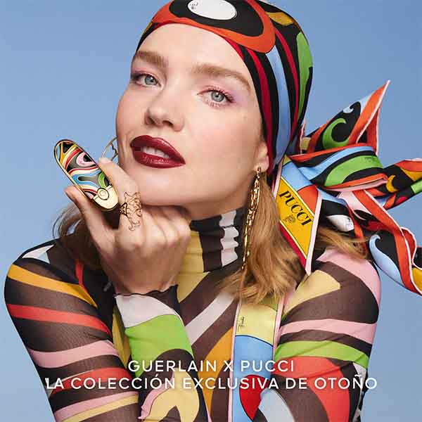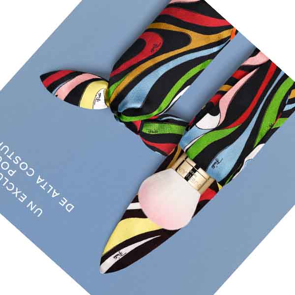 Camille Miceli, diretora artística da Pucci, e Violette, Diretora Criativa de Maquiagem da Guerlain, unem seus talentos para vestir o icônico pincel Météorites com o motivo Marmo de Pucci. Uma nova interpretação das ondas do sol sobre o mar Mediterrâneo.