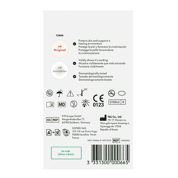 A caixa contém 12 adesivos (6 Mighty Patch Original e 6 Mighty Patch Invisible).