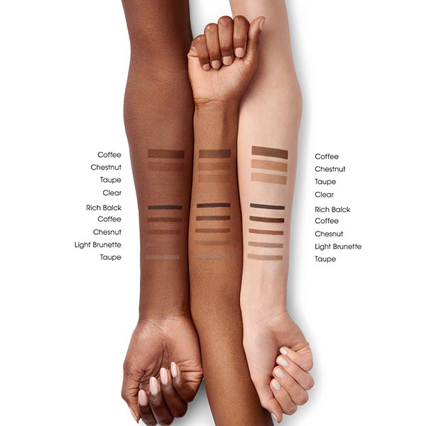 Sua exclusiva forma de micro lágrima permite traços precisos, semelhantes aos dos pelos, e inclui uma extremidade em espiral para esfumar e desembaraçar os pelos das sobrancelhas