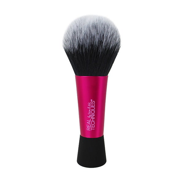 Barra, agite e esfume com o pincel multitarefa mini da Real Techniques; um pincel fofo de tamanho de viagem que satisfaz todas as suas necessidades de maquiagem, enquanto você está fora de casa.