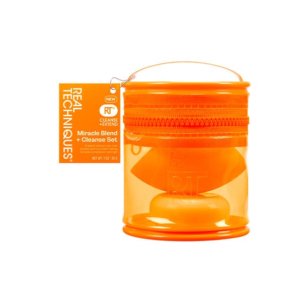 O Conjunto Real Techniques Miracle Blend + Cleanse é um conjunto de limpeza de 3 peças projetado para fazer com que suas esponjas durem mais e manter seus acessórios de maquiagem frescos.