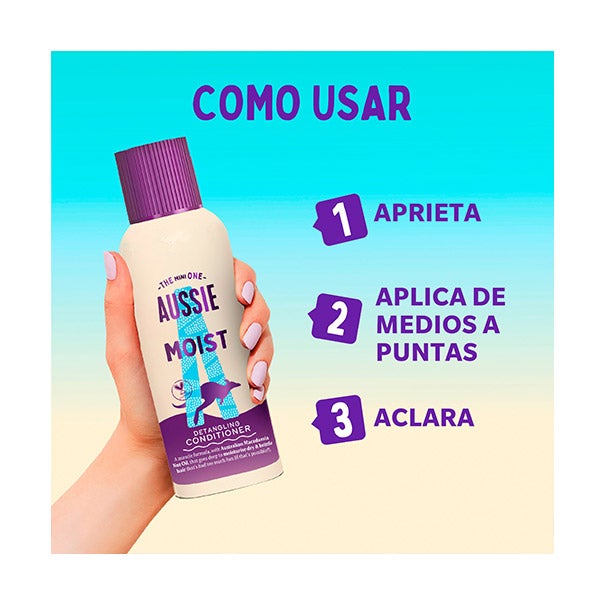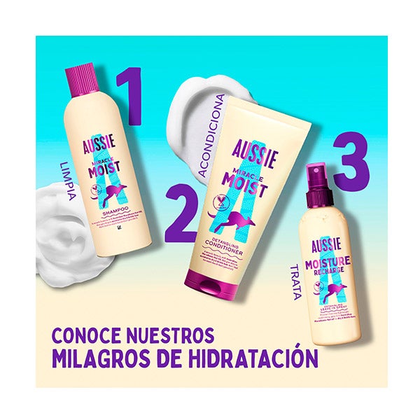 A MANEIRA AUSSIE DE USAR: Após lavar com o Shampoo Aussie Miracle Moist, aplique uma boa quantidade de condicionador no cabelo molhado. Massageie bem e enxágue como um profissional. Ta-dah, cabelo fabuloso!