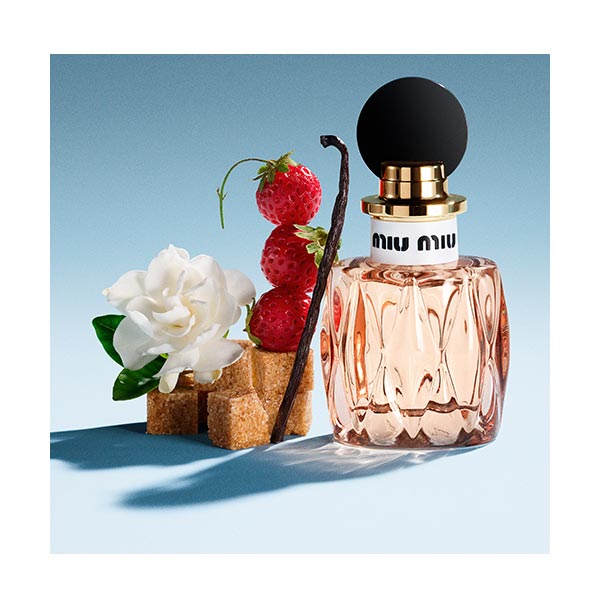 Uma fragrância feminina vibrante que combina doçura com sofisticação, com notas suculentas e quentes que despertam os sentidos, refletindo a liberdade, irreverência e charme despreocupado da mulher Miu Miu.