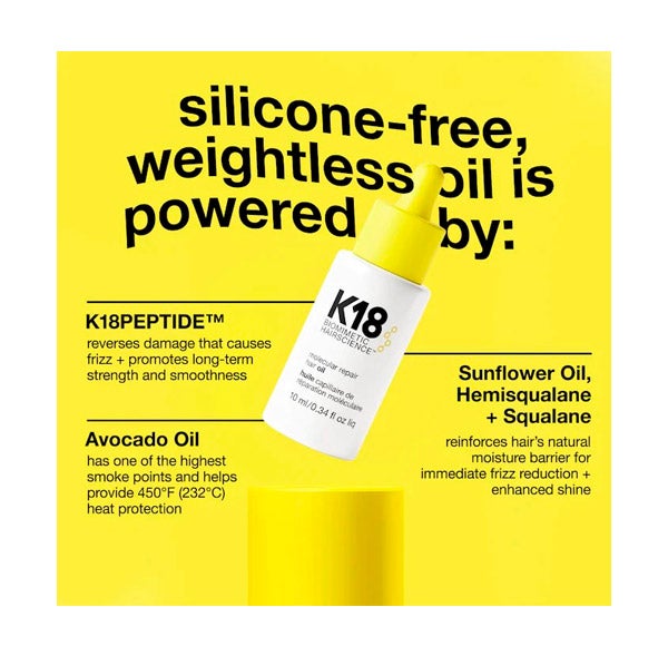 K18 Molecular Repair Hair Oil - Alisa e Repara o Cabelo Danificado 10 Ml