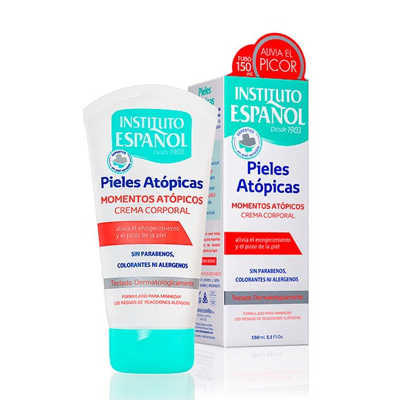A Crema Corporal Momentos Atópicos de Peles Atópicas do Instituto Español está formulada para responder às necessidades de bem-estar da pele atópica. Alivia a irritação, a vermelhidão e a coceira da pele que produzem os surtos de eczema em peles atópicas e sensíveis.
