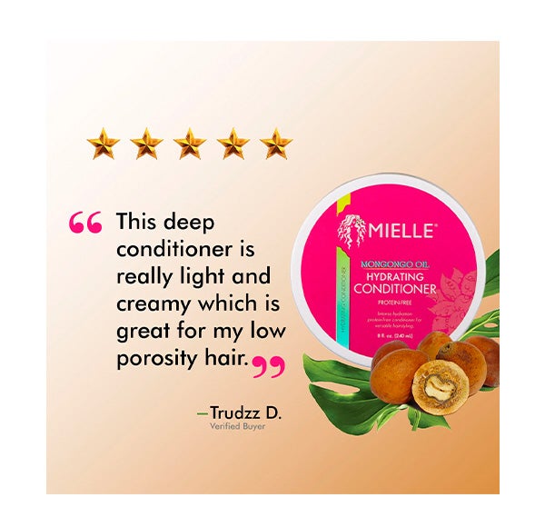 Proporciona uma hidratação profunda e um estilo versátil. Formulado para cabelo relaxado e natural. Sem proteínas. Alcança um cabelo suave e sedoso com o condicionador orgânico sem proteínas de Mielle. Feito com ingredientes orgânicos como o óleo de amêndoas, o óleo de Sacha Inchi e o óleo de mongongo da África subsaariana, esta fórmula totalmente natural fornece os nutrientes que seu cabelo precisa para uma hidratação intensa. Restaure a saúde e o brilho, e afaste-se sem preocupações sobre o dano com Intense Heat Defense ™ e Curl Pattern Protection ™ de Mielle. Dê ao seu cabelo o amor que ele merece.