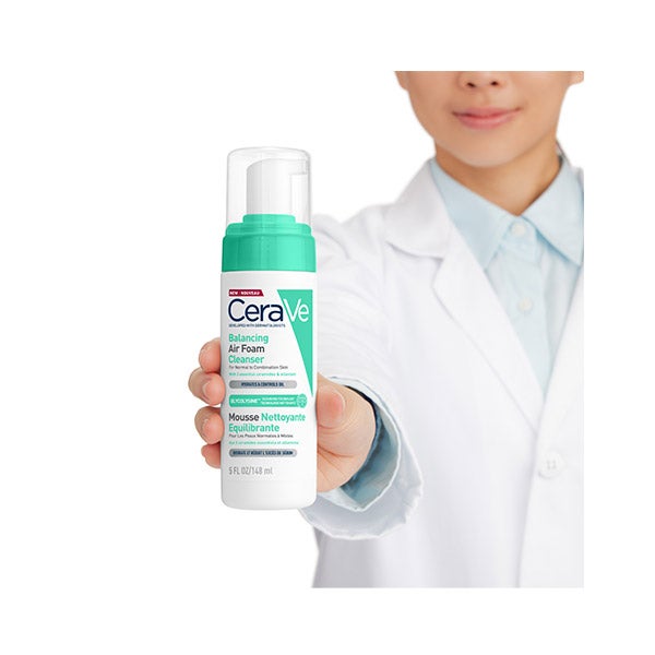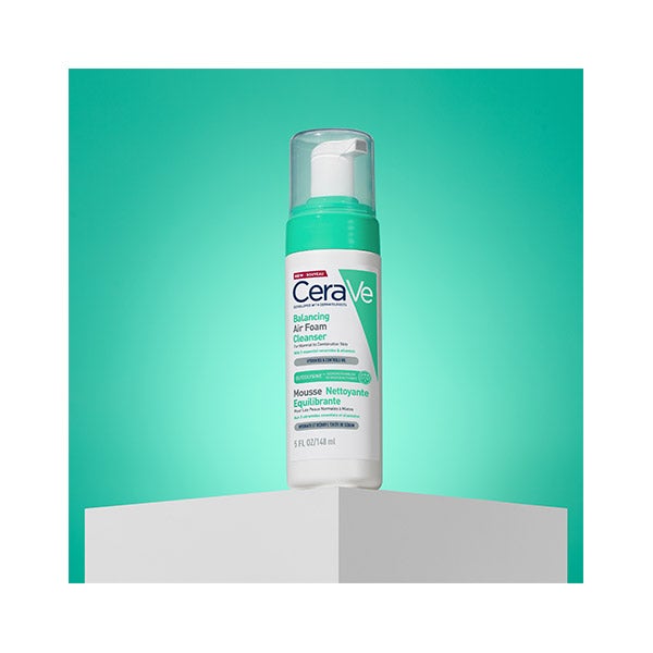 Limpeza Air Foam Reequilibrante, com 3 Ceramidas Essenciais e Tecnologia Glycolysine, limpa de forma potente mas respeitosa, reequilibrando a pele e eliminando o excesso de sebo, sujeira, maquiagem e impurezas, enquanto mantém a hidratação.