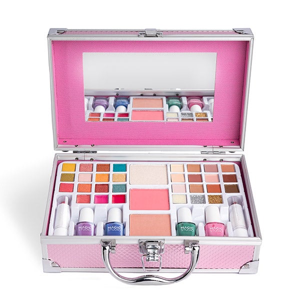 Descubra a maleta Face & Nail da Magic Studio, sua companheira de maquiagem perfeita para quem está em movimento. Este estojo tudo-em-um oferece 24 sombras de olhos, 6 brilhos labiais, 4 esmaltes de unhas, 2 blushes e bronzers, 2 batons e 3 pós, proporcionando uma ampla gama de cores e produtos versáteis.