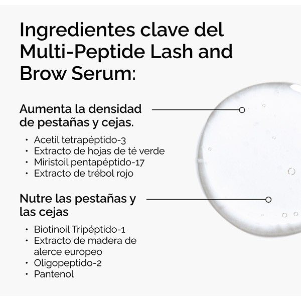 O soro multipéptido para cílios e sobrancelhas é uma fórmula leve e não oleosa projetada para fornecer cílios e sobrancelhas mais espessos, volumosos e saudáveis.