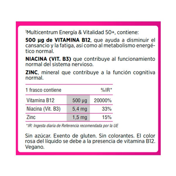 Suplemento alimentar que graças ao seu alto conteúdo em vitamina B12, satisfaz as necessidades das pessoas maiores de 50 anos.