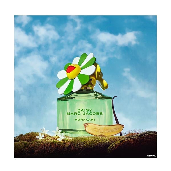 Desenhado por Marc Jacobs e Takashi Murakami em colaboração com a Coty, o frasco reinterpreta o clássico Daisy em um verde vibrante; é um encontro entre o espírito chamativo e caprichoso de Daisy e o mundo sobrenatural de Murakami.