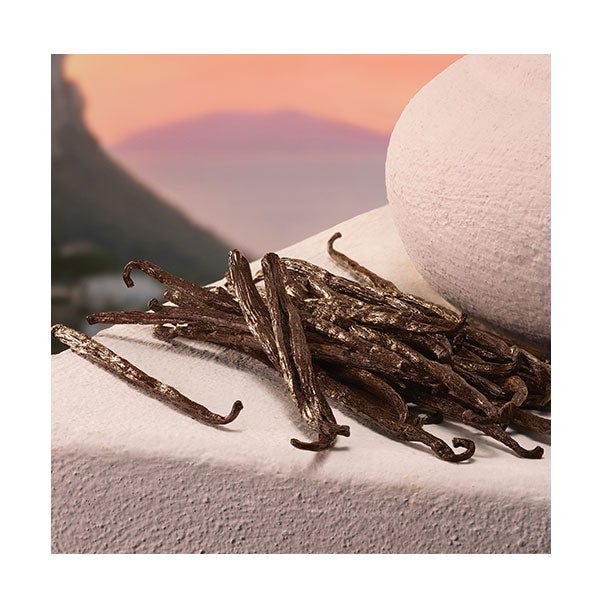 Fundo: Baunilha de Madagascar, quente e sensual, que traz profundidade e elegância duradoura.