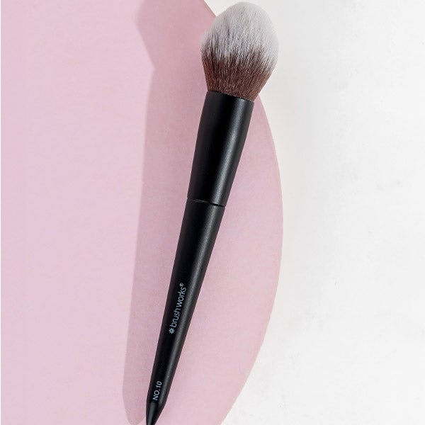 Apresentamos o pincel Brushworks No. 10 Bronzer Brush, um item indispensável na sua coleção de maquiagem para conseguir uma pele radiante e bronzeada pelo sol. Projetado para aplicar sem esforço produtos bronzeadores em pó e creme, este pincel de ponta angulada realça os contornos naturais do seu rosto, garantindo um acabamento bronzeado impecável. Com cerdas sintéticas de taklon ultrafinas, este pincel garante que o bronzeador deslize de maneira suave e uniforme, sendo extremamente delicado com a pele.