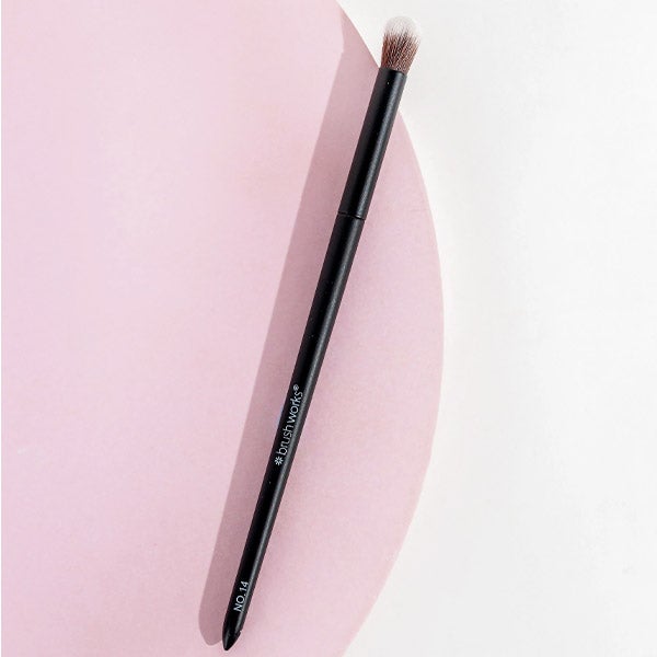 Apresentamos o pincel Brushworks No. 14 Fluffy Blending Eye Brush, sua ferramenta definitiva para alcançar uma maquiagem de olhos impecável. Projetado com precisão e perfeição em mente, este pincel é indispensável para quem busca uma aplicação de sombras suave e sem esforço. Sua forma arredondada facilita a mistura com precisão. Seja para um olho esfumado e sedutor ou um look suave para o dia a dia, este pincel é seu companheiro ideal para alcançar a perfeição. Com cerdas sintéticas de taklon ultrafinas, este pincel garante que as sombras deslizem suavemente e de maneira uniforme, sendo extremamente delicado com a área sensível dos olhos.