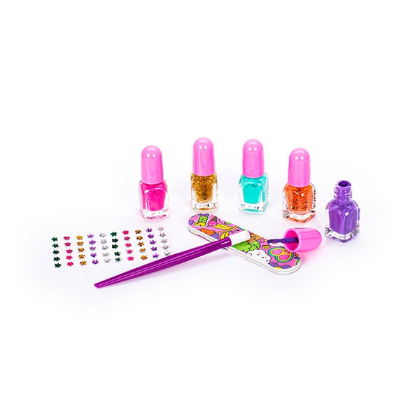 Kit de preparação de unhas que inclui 5 esmaltes, 1 lima, 1 stick e gemas para suas unhas.