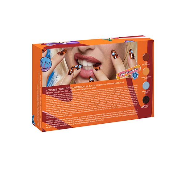 Slip Dressed Up: Butyl Acetate, Ethyl Acetate, Nitrocellulose, Isopropyl Alcohol, Acetyl Tributyl Citrate, Tosylamide/Epoxy Resin, Stearalkonium Bentonite, Silica, Sorbic Acid, Diacetone Alcohol, Phosphoric Acid, [May Contain/Peut Contenir/+/-: Iron Oxides (CI 77491), Red 34 Lake (CI 15880), Titanium Dioxide (CI 77891), Black 2 (CI 77266 [nano]), Yellow 5 Lake (CI 19140), Red 6 Lake (CI 15850), Ferric Ammonium Ferrocyanide (CI 77510)].