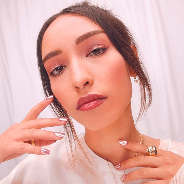 Experimente escolhendo entre seus 12 tons de rosa neutro e entre todos os acabamentos que ela oferece: desde um mate ultra-suave até metálicos reluzentes, passando por cores peroladas.
