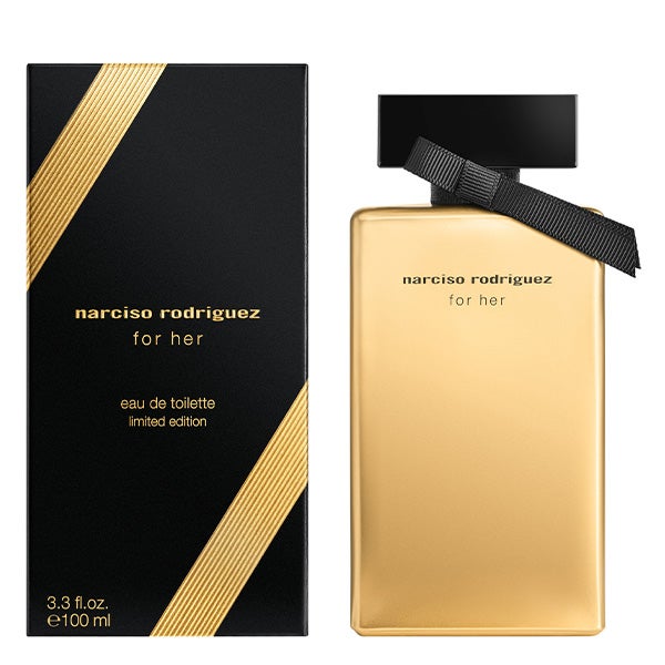 "Este Natal, a icônica fragrância for her Eau de Toilette se reinventa com um frasco de edição limitada, laqueado com ouro.
