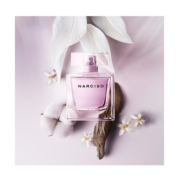 Tão suave quanto a caxemira acariciando sua pele, esta fragrância amadeirada almiscarada celebra as delicadas flores brancas misturadas com almíscar. As notas de saída florais de cravo e flor de laranjeira são iluminadas com notas de vetiver branco e flor de algodão no coração da fragrância. Envolvendo sua alma em um rastro sensorial, o coração de almíscar característico de Narciso Rodriguez se mistura com sensuais notas de fundo de madeiras abstratas. NARCISO Eau de Parfum Radiante é elaborado com 86% de ingredientes de origem natural e possui certificação vegana.