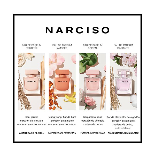 Revele seu magnetismo com NARCISO Eau de Parfum Radiante, o novo perfume feminino de Narciso Rodríguez. Uma fragrância que te envolve em uma sensação de pureza transparente. À medida que te envolve em seu aroma relaxante, revela-se a essência da tranquilidade. Mergulhe seus sentidos em um terno abraço e deixe-se envolver por uma sensação relaxante.