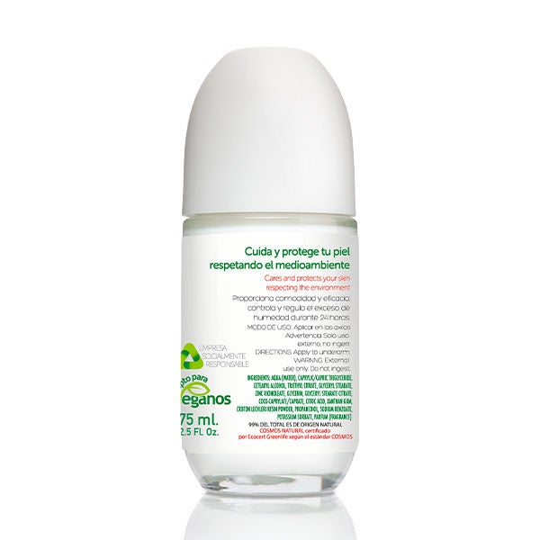 Proporciona conforto e eficácia, controla e regula o excesso de umidade durante 24 horas, proporcionando frescor e bem-estar, graças aos seus ativos de origem natural.
