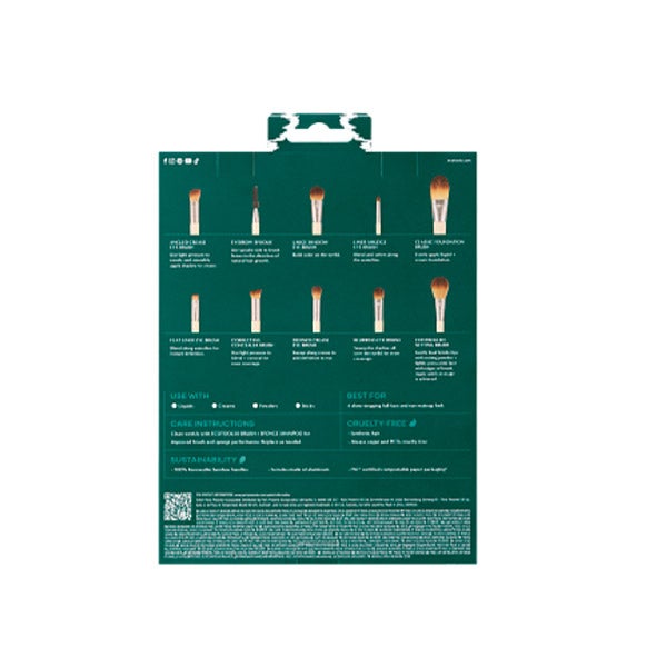 O conjunto de pincéis Natural Beauty da EcoTools inclui 10 pincéis de maquiagem para um visual espetacular no rosto e nos olhos. Os pincéis podem ser usados com fórmulas líquidas, em creme, em pó e em bastão, como sombras de olhos, corretivo, pós fixadores, base, blush, bronzer e delineador.