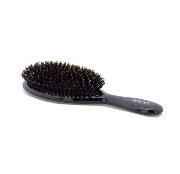 O escova de cerdas naturais da Termix devolverá o brilho habitual ao cabelo. Com fibras 100% naturais de javali, potencializa ao máximo o brilho natural da cabeleira e se torna um imprescindível para escovar a seco o cabelo diariamente. Uma ferramenta muito versátil e perfeita para cabelos grossos e secos, com a qual conseguirás um toque sedoso para sua cabeleira e também poderás desembaraçar o cabelo.
