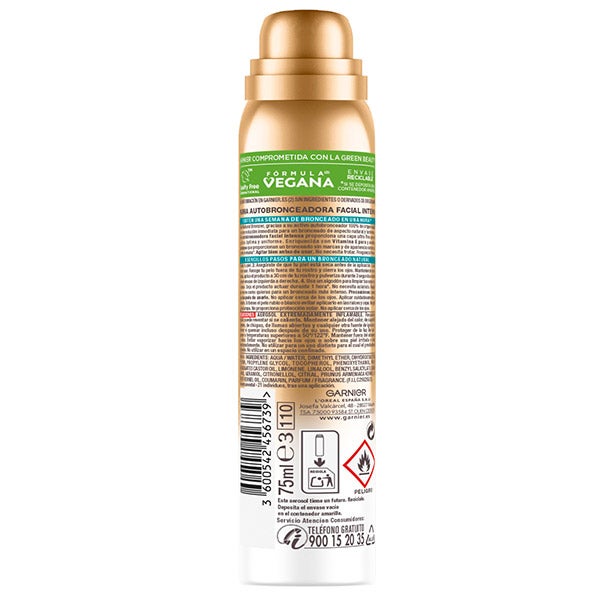 AQUA / WATER • DIMETHYL ETHER • DIHYDROXYACETONE • GLYCERIN • PROPYLENE GLYCOL • TOCOPHEROL • PHENOXYETHANOL • PEG-60 HYDROGENATED CASTOR OIL • LIMONENE • LINALOOL • BENZYL SALICYLATE • BENZYL ALCOHOL • GERANIOL • CITRONELLOL • CITRAL • PRUNUS ARMENIACA KERNEL OIL / APRICOT KERNEL OIL • COUMARIN • PARFUM / FRAGRANCE