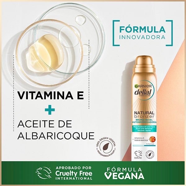 Bronzeador Natural em névoa autobronzeadora para corpo com óleo de damasco nutritivo para um bronzeado sem marcas, natural e uniforme.