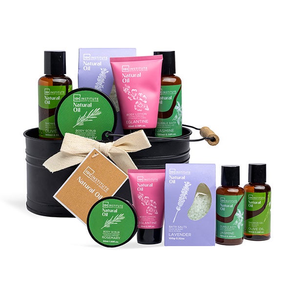 Desfrute de um momento de cuidado e relaxamento com este completo conjunto de spa em cesta metálica. Este conjunto de luxo contém tudo o que é necessário para desfrutar de um banho revitalizante: gel de banho para uma limpeza suave, banho de espuma para uma experiência relaxante, esfoliante corporal para uma pele macia, loção hidratante para nutrir profundamente e sais de banho para um momento revitalizante.