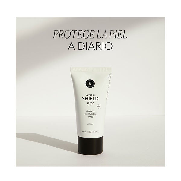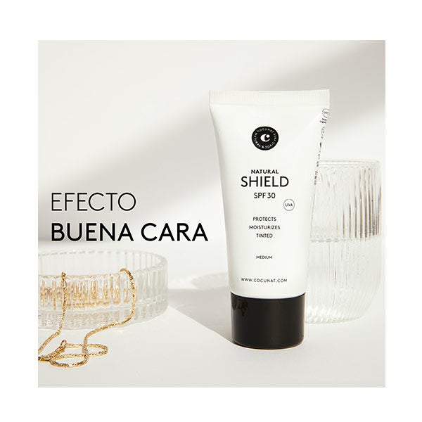 NATURAL SHIELD SPF 30 é o fotoprotetor solar 2 em 1 efeito maquiagem com cor, perfeito para uso diário. Em um único gesto, proporciona proteção e efeito boa cara.