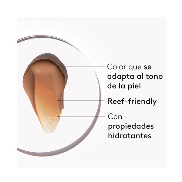 Seu filtro físico não nano é coral e ocean friendly: não contamina os oceanos enquanto protege contra os raios UVB e UVA (SPF 30). Além disso, unifica o tom e proporciona luminosidade. Sua formulação contém ácido hialurônico para uma hidratação máxima e o acabamento na pele é suave e aveludado, de rápida absorção.