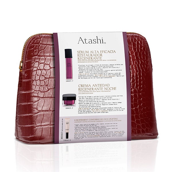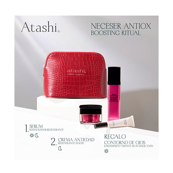 Atashi nécessaire para um ritual antioxidante, antienvelhecimento e regenerador. Restaura e traz luminosidade à pele, diminui rugas e combate linhas de expressão. Benefícios Destacados:
