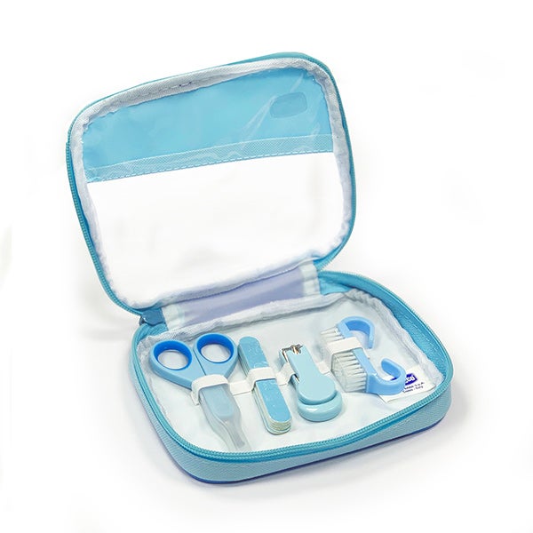 Prático nécessaire que reúne tudo o necessário para o cuidado das mãos e unhas do bebê.
