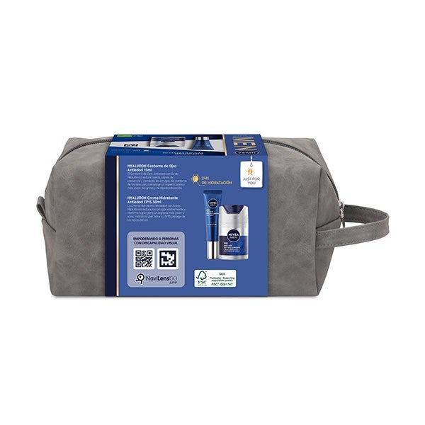 Consiga uma rotina completa de beleza com o Estojo Hyaluron da Nivea Men. O tratamento premium que proporciona o cuidado antienvelhecimento para homens mais eficaz. Apresenta um creme que combate sinais de idade como rugas, deixando a pele perfeitamente hidratada e mais firme. Acompanha o contorno dos olhos com Ácido Hialurônico que reduz olheiras e linhas de expressão. Uma combinação incrível que te fará rejuvenescer anos e evitará o envelhecimento precoce da pele.