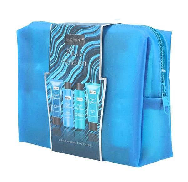 Neste elegante nécessaire, você encontrará um Shampoo e Gel de Banho 2 em 1, uma loção corporal, um gel de barbear refrescante e um bálsamo pós-barba maravilhosamente calmante.