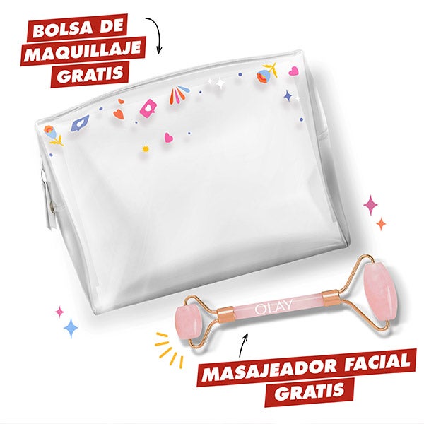 Como um presente especial, inclui um face roller para desfrutar de massagens relaxantes e um encantador nécessaire para guardar todos os seus produtos básicos para o cuidado da pele.