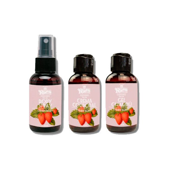Necessaire Strawberry Team Gel-Shampoo Morangos 50ml + Creme Corporal Morangos 50ml + Body Spray Morangos 50ml