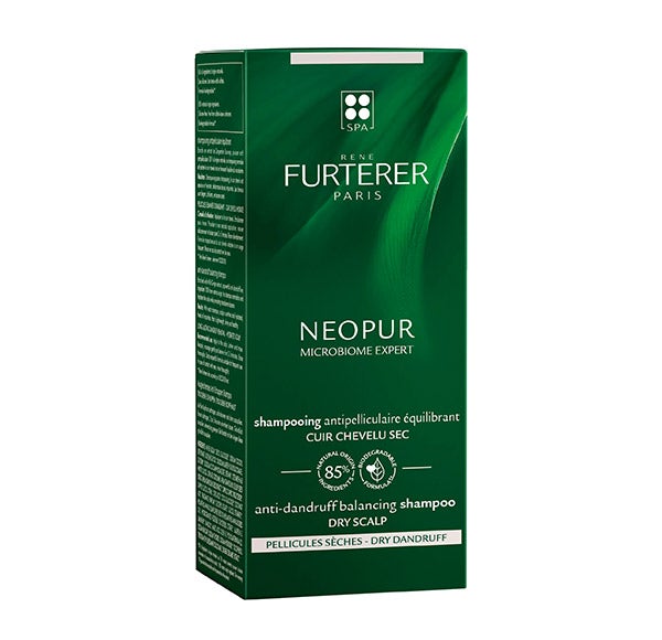 O shampoo anticaspa de uso frequente NEOPUR restaura o equilíbrio do microbioma do couro cabeludo e elimina suavemente a caspa seca e as coceiras a longo prazo.
