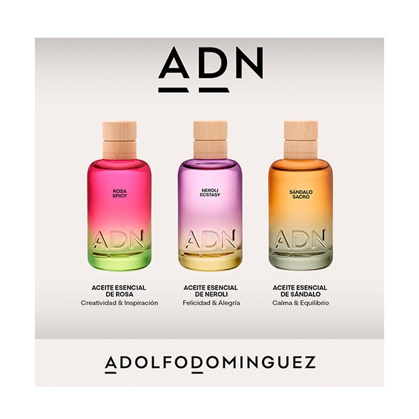 Neroli Ecstasy é parte da coleção ADN de Adolfo Domínguez, uma coleção de Eau de Parfum genderless, elaborada com óleos essenciais que potencializam sua identidade. Seu óleo essencial de neroli emana felicidade, eleva o estado de ânimo e inspira paz e harmonia. Um perfume desenhado para potencializar quem você é. Escolha ser você.