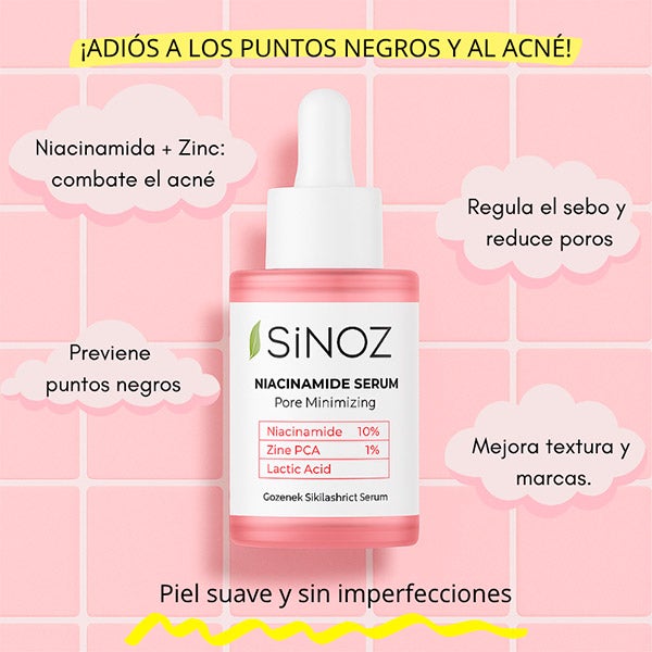 Sinoz Sérum de Niacinamida e Zinco – Controle da Acne, Poros Reduzidos e Pele Sem Imperfeições
