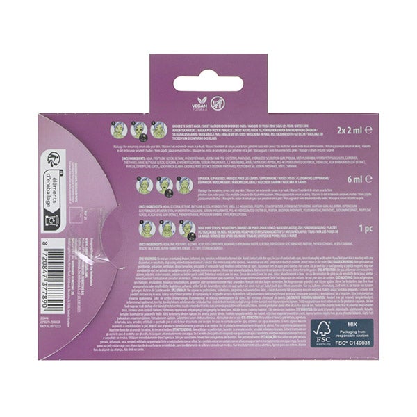 Aproveite uma deliciosa máscara facial que dá à sua pele um impulso calmante. Enquanto isso, dê aos seus lábios um tratamento hidratante com a Lip Mask. E devolva o brilho aos seus olhos com a máscara para os olhos e a máscara abaixo dos olhos.