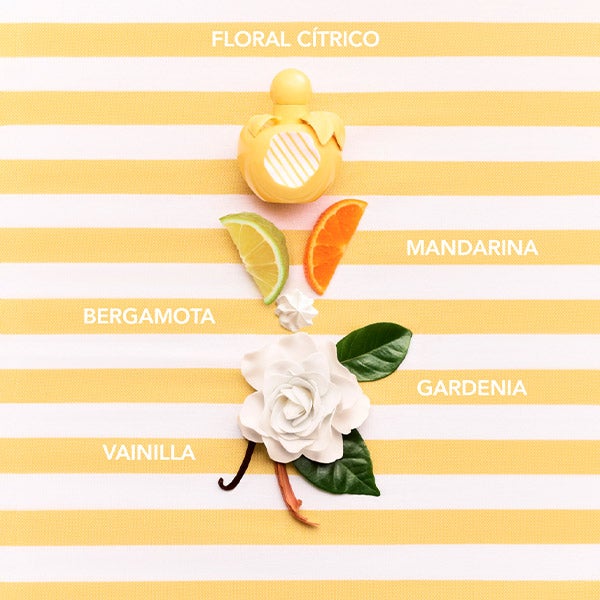 Nina Soleil, o novo e delicioso perfume feminino em edição limitada de Nina Ricci. Com suas notas doces, frescas e leves, esta fragrância floral cítrica oriental irradia espontaneidade e alegria de viver.