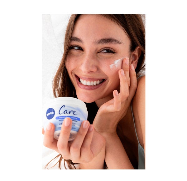 NIVEA Care é um creme multiuso que nutre intensamente a pele, deixando-a incrivelmente suave e sem resíduo gorduroso algum. Sua fórmula inovadora baseia-se em uma tecnologia chamada hidrodispersão de ceras. Essas suaves hidroceras fundem-se instantaneamente com sua pele assim que você aplica o creme, sendo absorvidas imediatamente sem deixar sensação pegajosa nem gordurosa e proporcionando uma nutrição profunda de longa duração. Sendo um creme universal, você pode usá-lo para cuidar e hidratar rosto, corpo e mãos. Sinta o efeito WOW na sua pele com NIVEA Care!
