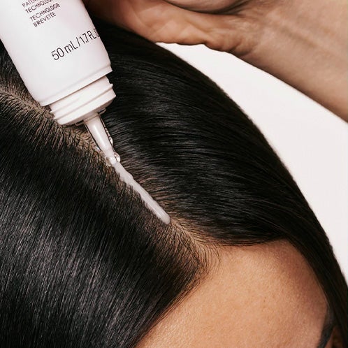 Separe o cabelo com o aplicador de ponta fina. Aperte suavemente e aplique diretamente sobre o couro cabeludo.