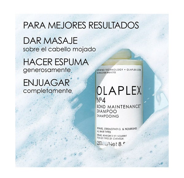 Bond Maintenance Shampoo 4 está formulado com a tecnologia patenteada de reconstrução de pontes; Tratamento Olaplex.